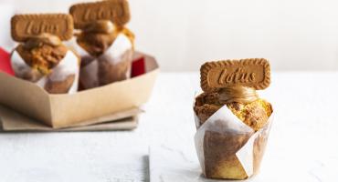 Biscoff® et chocolat blanc : une combinaison qui a fait ses preuves. Un muffin moelleux...