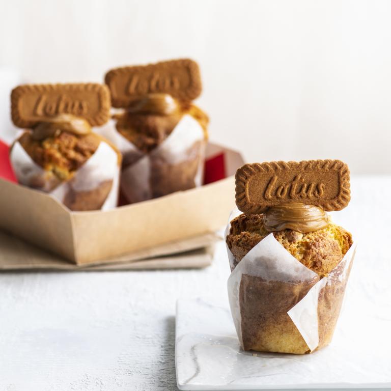 Verser la pâte à tartiner Biscoff dans une poche à douille munie d’une douille ronde et en garnir les muffins. Pour finir, verser un peu de pâte à tartiner Biscoff sur chaque muffin et y déposer un biscuit Biscoff.